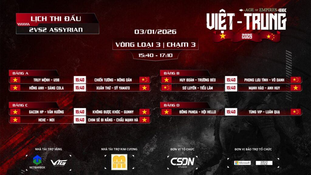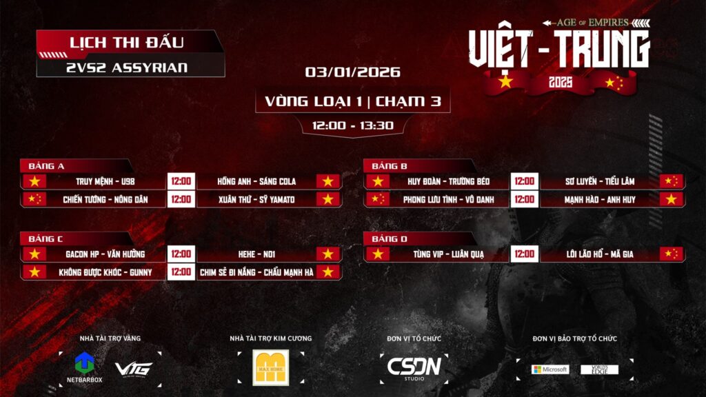 Thời gian thi đấu: 03/01 & 04/01/2026