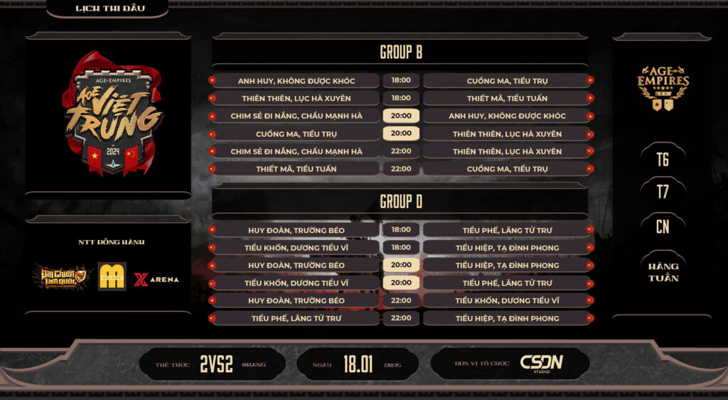 —————————— Cảm ơn nhà tài trợ MAXHOME đã đồng hành cùng Giải đấu AOE Việt – Trung 2024 Cảm ơn nhà tài trợ Đại chiến Tam Quốc đã đồng hành cùng Giải đấu AOE Việt – Trung 2024 https://daichientamquoc.onelink.me/RLEd/Socialall Cảm ơn nhà tài trợ X-Arena đã đồng hành cùng Giải đấu AOE Việt – Trung 2024 |