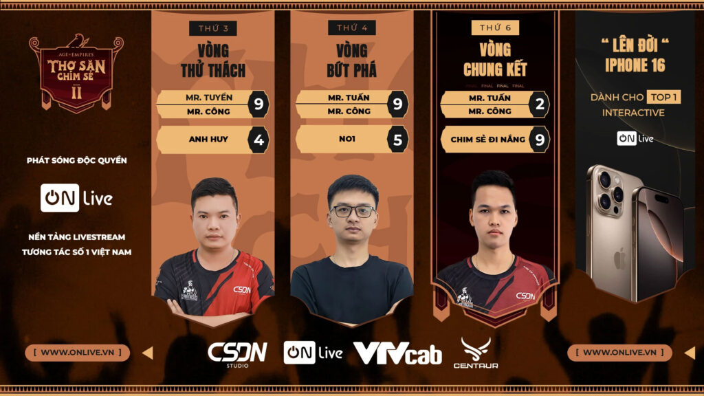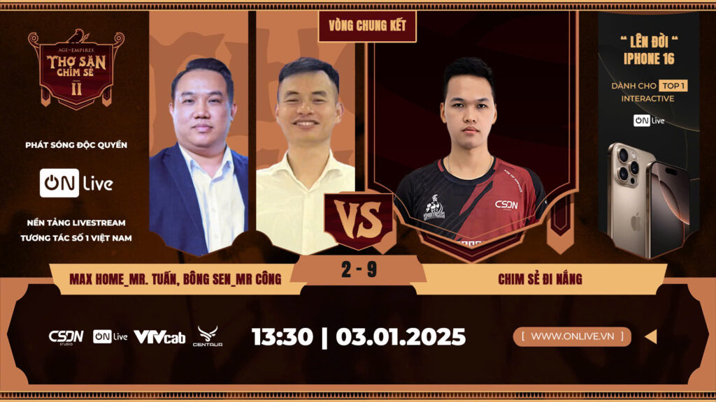 Trước đó, Anh Huy và No1 đều thất bại. Giống như tuần đầu tiên, đó là những kết quả cho thấy sự khó khăn của thể thức thi đấu 1vs2 Random. Nhưng khi người cầm chuột là Chim Sẻ Đi Nắng, mọi chuyện lại hoàn toàn khác. Chỉ cần Team Thợ Săn không phải là những game thủ chuyên nghiệp hoặc bán chuyên có trình độ cao, “thần đồng AOE Đan Phượng” luôn biết cách tận dụng đẳng cấp, kinh nghiệm, sự khôn khéo của mình để chống đỡ cả 2 nhà đối phương và giành chiến thắng.